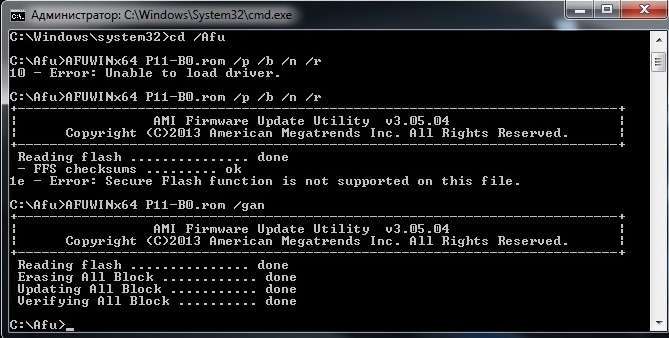 P.S. Но лучше прошивать в настоящем DOS при помощи afudos
