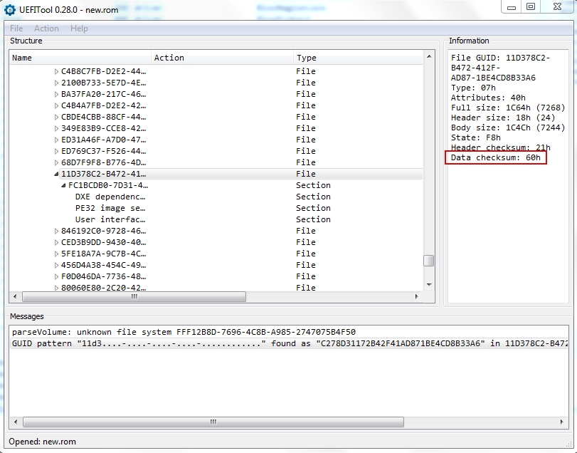 DeathBringer Я понял Вас, тогда поставлю вопрос иначе. Программа UEFITool_NE видит прошивку и позволяет извлечь секцию. UEFITool не может распознать прошивку, поэтому с помощью этих программ не получается отредактировать прошивку. Если же использовать программу phoenixtool273, то с помощью нее получается отредактировать прошивку и программа InsydeFlash ее воспринимает, но уже при перезагрузке BIOS выдает сообщение "InsydeH20 - Secure Flash Error : Decompress failed!!! Please press any key to reset system......". Вы ссылаетесь на ключ Secure Flash, но разве бы тогда программа InsydeFlash пропустила бы этот дамп на прошивку? Если сюда обращаются с вопросом значит не просто так, а потому что не находят ответы. Для этого я так понимаю и создан форум, а в итоге получается, что вопросы задвигаются в оффтопик без всяких объяснений. Вот Вы говорите, что дело в Secure Flash, но точно это так или может в неправильном редактирование дампа? Вы же даже не разбирались в вопросе. Если Вы считаете, что причина ошибки в Secure Flash, то хотя бы объясните почему так думаете. А то получается, что и Вы не объяснили и другим не дали, т.к. сообщение задвинули в оффтопик.