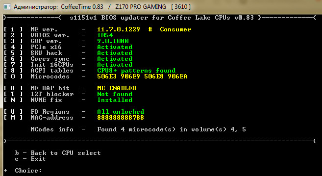 На модифицированных биосах по-прежнему будут работать серийные Skylake и Kaby Lake, если оставить их микрокоды (506E3 и 906E9 соответственно).