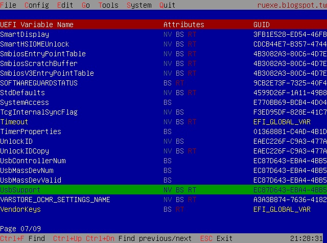 Переменная с именем UsbSupport есть в списке? P.S. Скриншот делается по F12