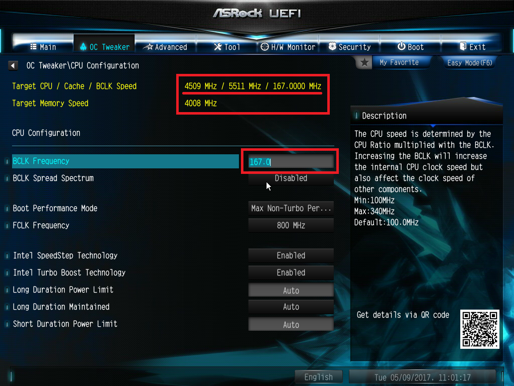 Всем привет. Творится у меня какая то чертовщина и не могу понять чего! У меня Asrock Z170 Pro4 и i5-6400, полгода назад я его разогнал до 4500 и было всё нормально а вчера смотрю всё сбилось и нет у меня разгона, я решил обратно разогнать как раньше но меня сильно удивили цифры которые получились, Target CPU / Cache / BCLK Speed - 4509 MHz / 5511 MHz / 167.0000 MHz. Меня сильно беспокоит частота кеша в 5511 MHz! и я не рискнул разгонять а оставил в стоке! подскажи как побороть эту напасть! или можно с такой частотой стартовать?