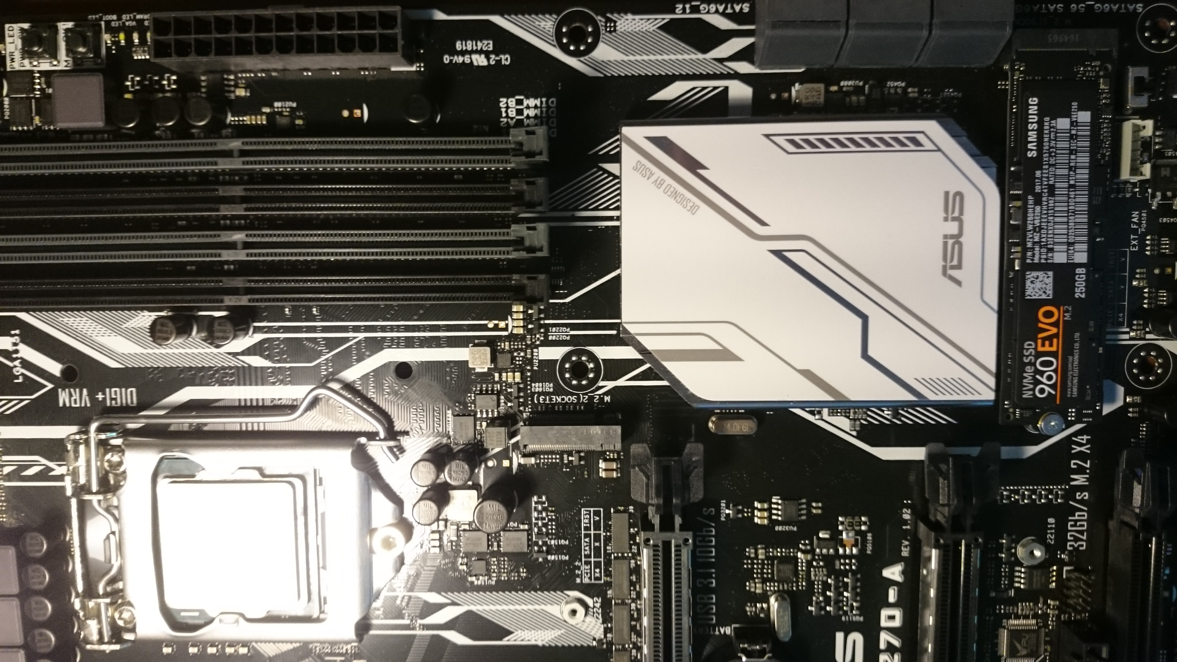 Здравствуйте! На ASUS PRIME Z270-A куда лучше вставить М.2,под видеокарту что ниже справа разьем,или рядом с процессором?