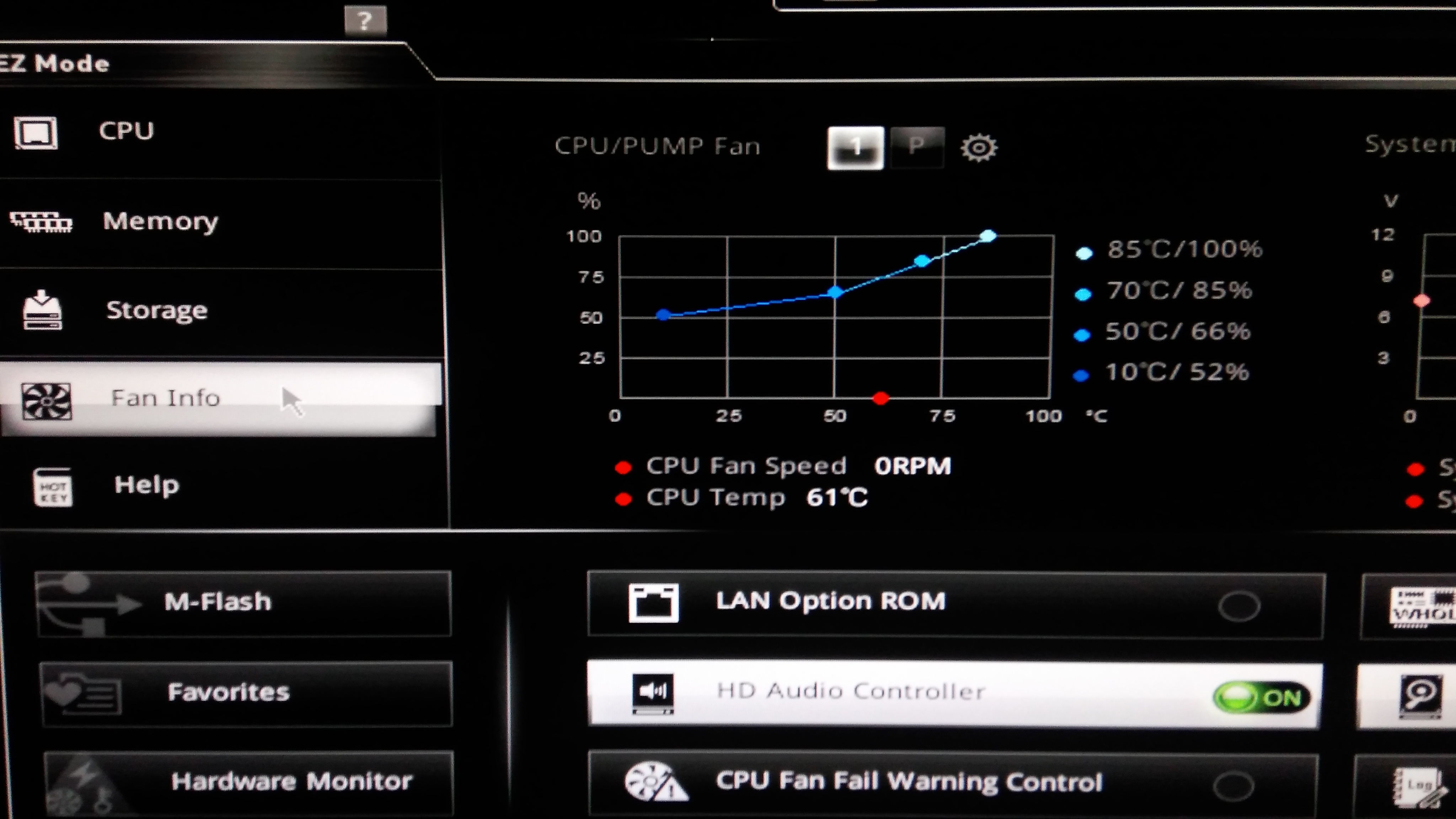 Помогите настроить курву для кулера боксового на MSI B350 PCI MATE Нифига не пойму, к том уже добавилась какая-то другая курва еще ( сининего цвета, на фото не видно) Такое впечатление, что не на что не реагирует, как не настраиваю