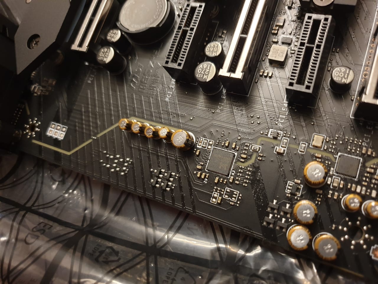 Урвал MSI z490 Unity. Все вроде хорошо, обнаружил вот такое положение конденсаторов на плате, как то не придал этому значения, зря может? Или параною лечить? Пломбы все на месте, плата не б/у, пакет запечатан.