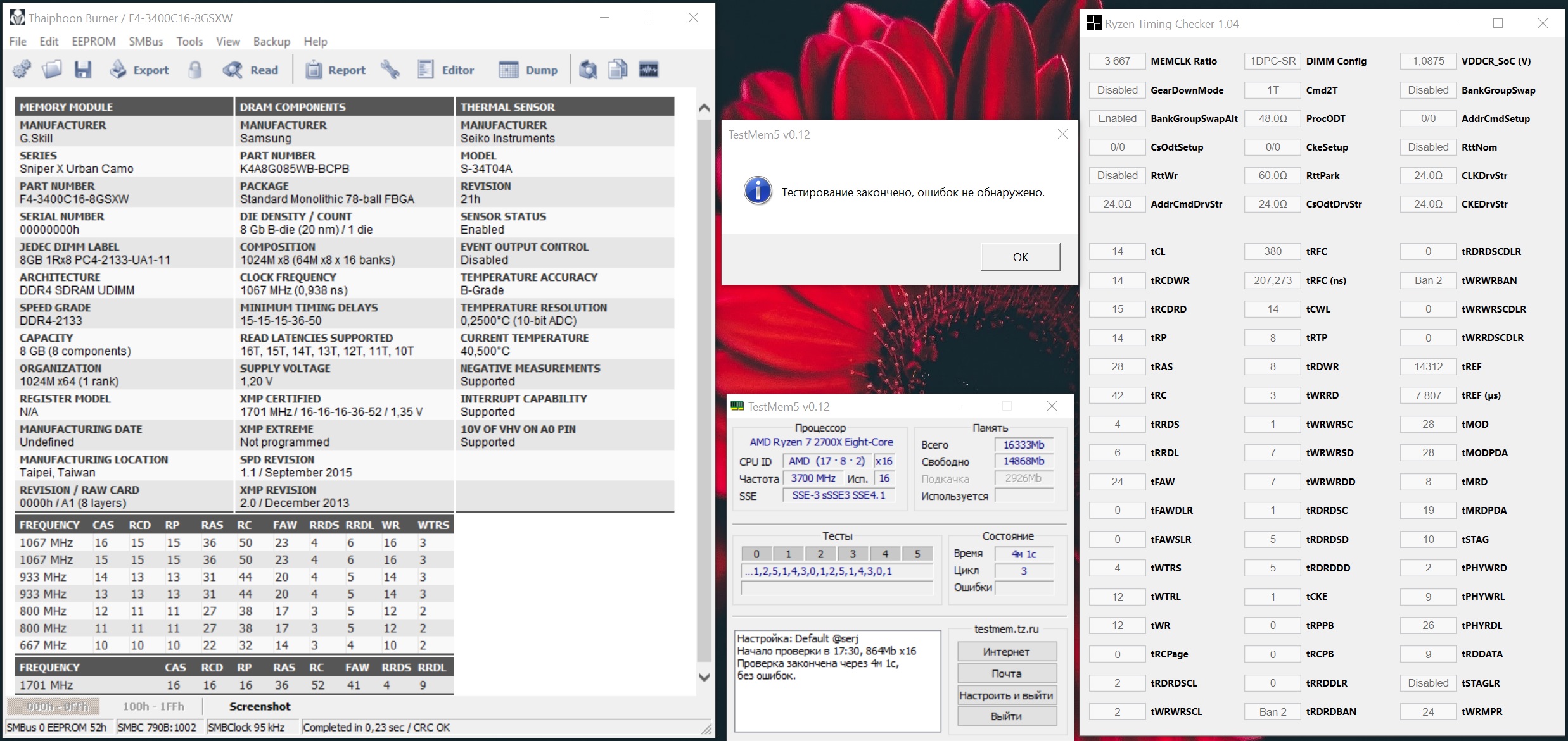 1usmus а на CH7 сколько стабильных герц из этих модулей выжалось? RTT, я так понимаю, стоит автоматом или все же пришлось вручную подбирать? И что в Аиде теперь получается?