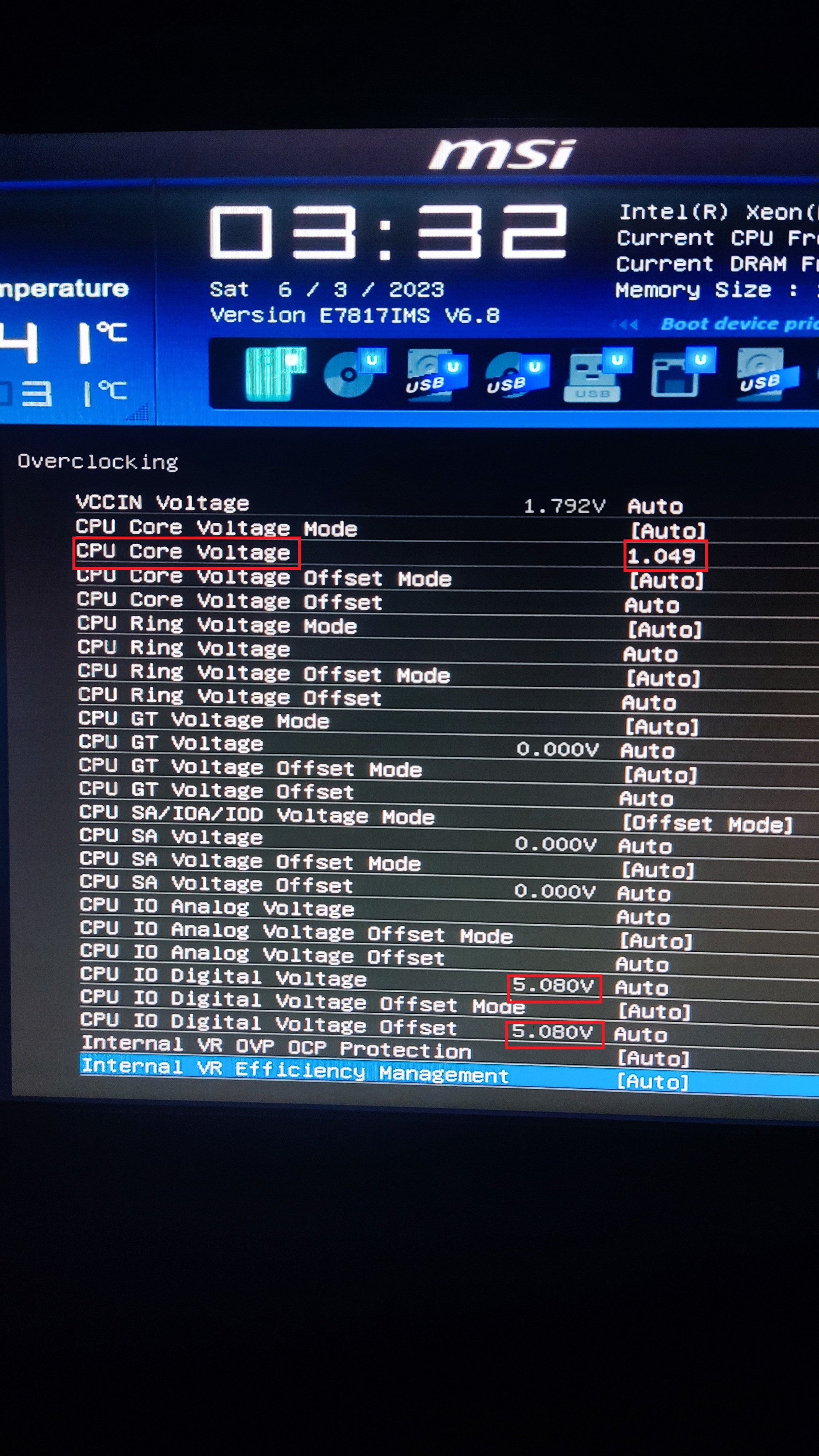 Скажите пожалуйста, решил модифицировать Биос на материнка MSI H81-E33(проц E3 1240 V3) для регулировки напряжение через Биос, а то по заводу пункты отсутствовали(скрыты). Решил все по открывать через AMIBCP, выставил скрытые параметры на USER , прошился спокойно, выставил свое напряжение на процессор 1.047v(материнка при анлоке буста выставила 1.155v). Сижу довольный. Пока не увидел странное напряжение на на параметре IO digital offset стоит больше 5V и это на авто. Испугавшись полазил в интернете и вижу что у людей этот параметр стоит в положении +-1V. 1) Почему у меня такое напряжение стоит? 2) Стоило ли открывать все пункты меню или нада было оставить толькое основное, если да, то опять через AMIBCP скрывать и оставлять только напругу проца? P.S имхо даже если скрою , мать же дальше будет выставлять свои 5V?