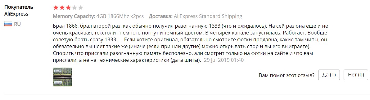 Внимание: на Али массово продается перемаркированная на 1866Мгц память! Много случаев когда на 1866Мгц вообще не заводится, в случае успеха покупатель обнаруживает завышеные тайминги! Детали: тыц1, тыц2, тыц3, тыц4