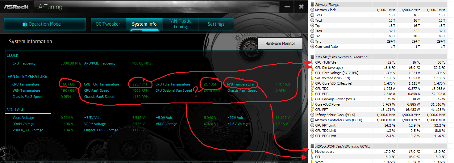 Все бы ничего, но вероятно из-за этого и обороты кулера (ID-Cooling SE-224-W) показывает 1100-1300 оборотов, что весьма шумно (мать думает что проц горячий и пытается охладить трахание)