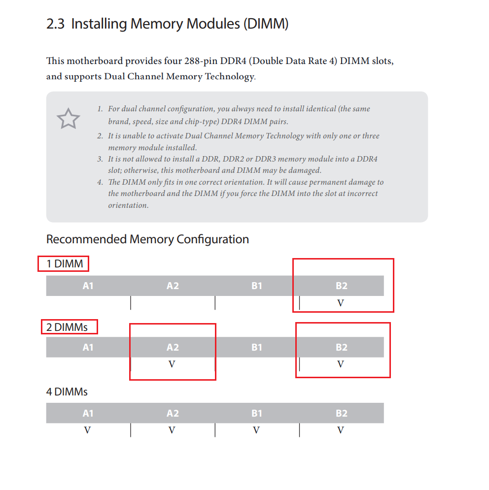 Снова старые грабли... Неужели при сборке трудно было открыть книжечку по мат. плате и посмотреть как и куда ставится память..