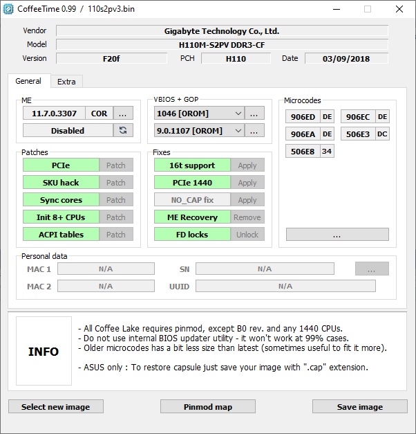 Для плат на базе чипсетов Z370, B365 и H310C можно добавить поддержку процессоров Skylake и Kaby Lake. Для этого достаточно понизить версию МЕ и добавить необходимые микрокоды.