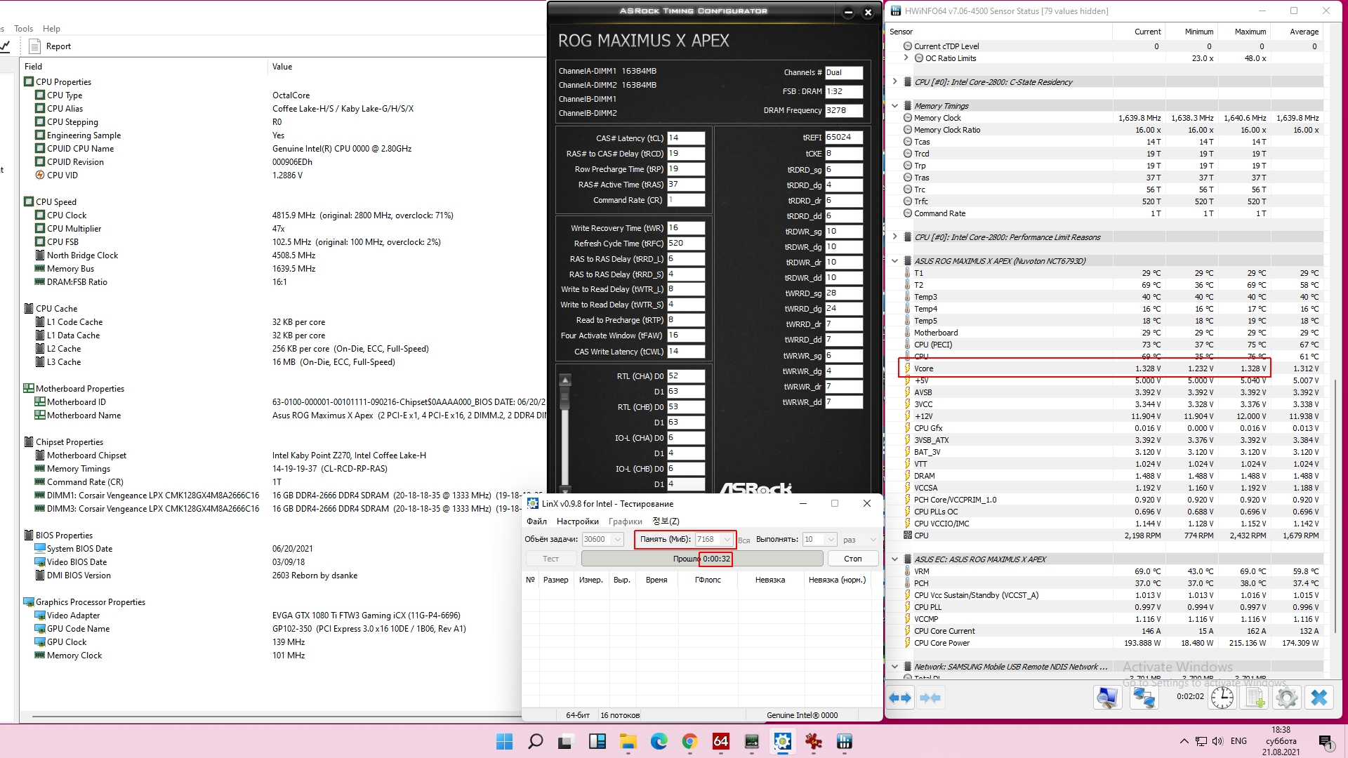 Имеется процессор i5 6400 и мат.плата ASUS Maximus VIII Hero, поставил i9 9900k ревизии R0. Использовал мод.биос, сделанный в CoffeeTime 0.85a, добавлял микрокод D2 для 906ED в advanced mode. Изолировал с помощью каптона, замыкал на процессоре перемычку для запуска https://i.imgur.com/MWLpLm0.jpg Прошивал с помощью программатора CH341A, используя AsProgrammer 1.4.0, сверку прошло при прошивке.