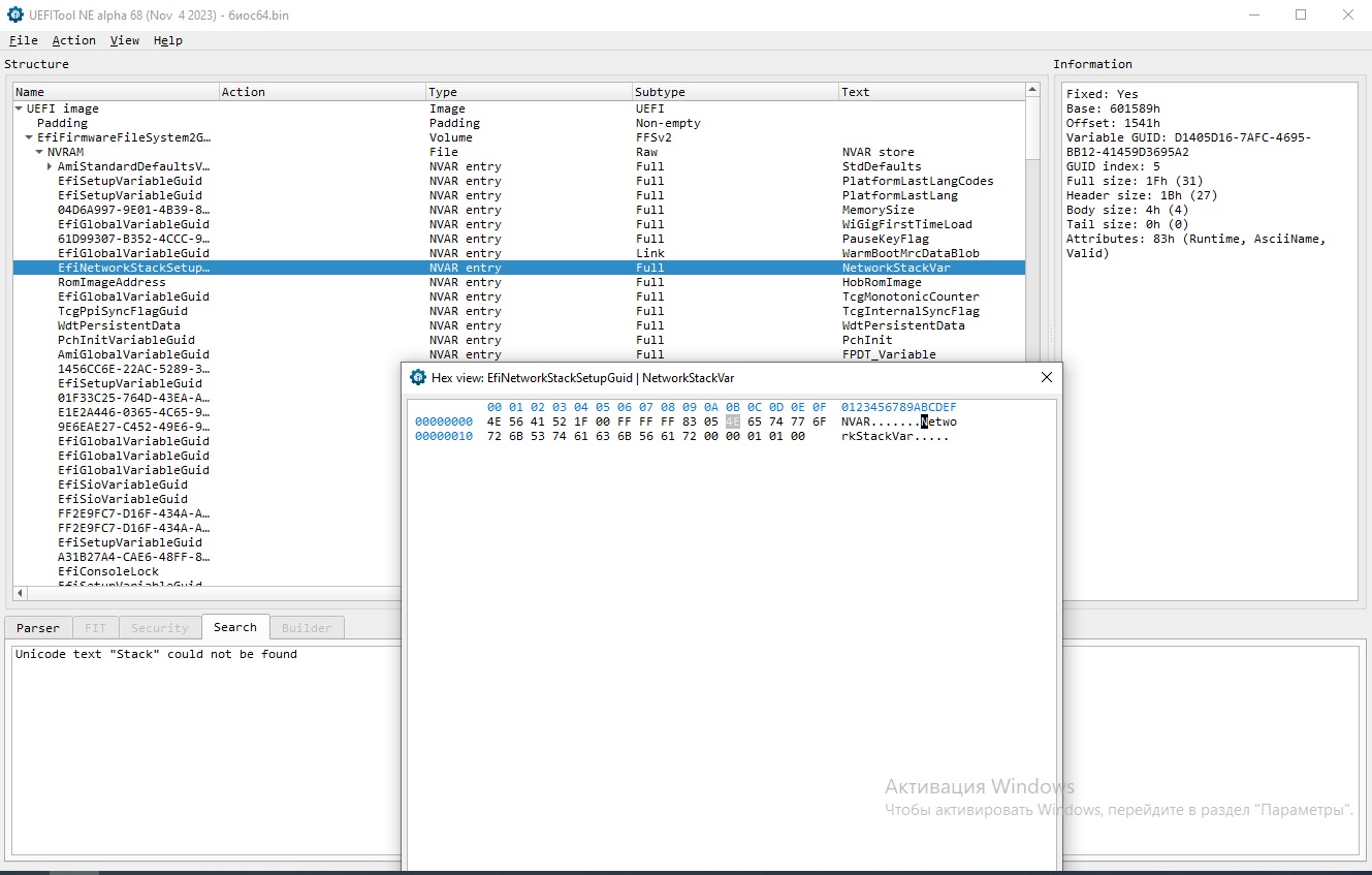 Republic of Gamers Найдите при помощи UEFITool нужную переменную NVRAM и исправьте ее в любом шестнадцатеричном редакторе.