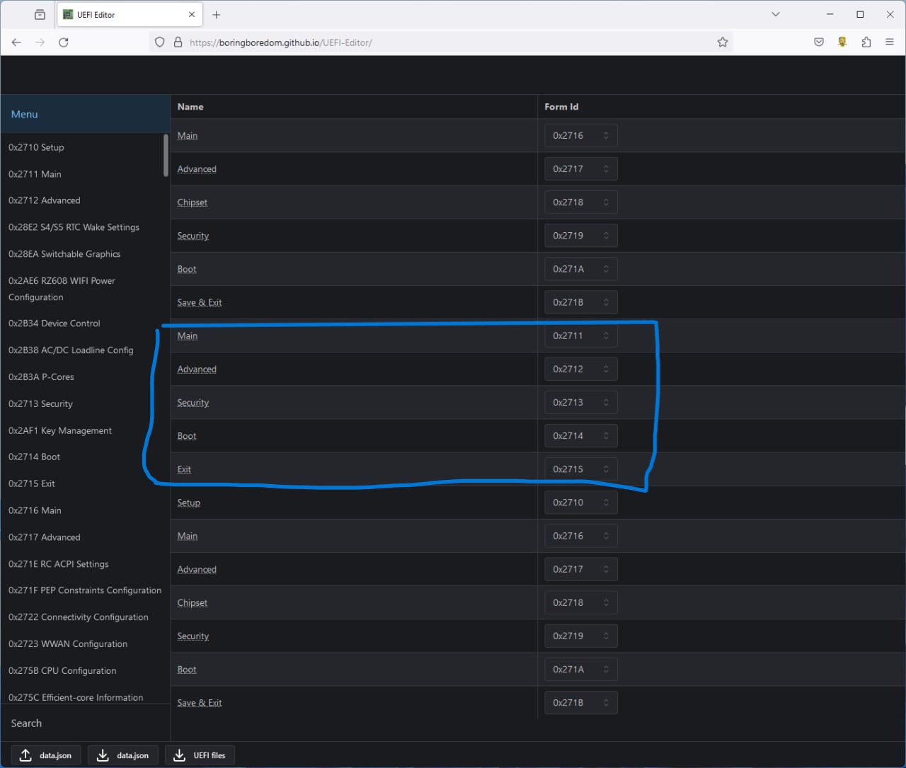 Честно говоря уже такая каша в голове, ковырял тут там, вроде чувствую что где-то рядом, а не получается. Пытался и подменить меню чтобы например при выборе настроек вай фай в биосе открывался расширеный адвенсед, но тоже не получилось. Т.е чтобы я не менял через хекс ничего не меняется в биосе. Может у вас что выйдет сделать я распотрошил все файлы какие только смог дальше совсем ковырять боюсь получить кирпич.