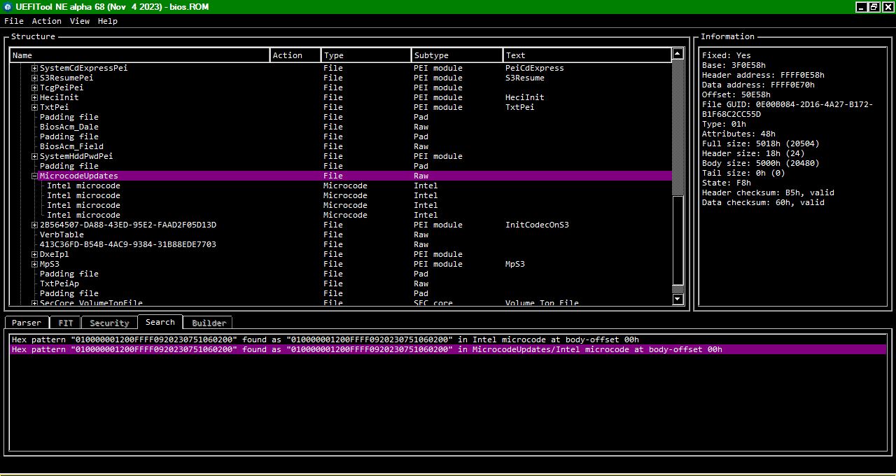 1) В послденее время опять участились жалобы на наличии вируса в пакете UBU, якобы МСЕ,ехе содержит вирус. Поэтому принято решение, что вместо ехе файла теперь будет py исхотдный Пайтона. Чтобы была корректная работа с микодами вам необходимо установить пакет Ptyhon версии 3.7 или выше. А также две библиотеки: - colorama - PLTable Как это сделать уаказано на ГитХабе в репе МСЕ. Вы можете юзать м ехе файл, но скачивать его будете самостоятельно. Если установите Пайтон то у вас появится возможность юзать другие приложения на Пайтон, которых очень много. 2) Все архивы с файлами теперь здесь https://mega.nz/#F!MSRDxSqR!5etS-te7ZqRQX9Zb25es_A 3) На данный момент рекомендуется использовать UEFITool v0.25.0 (и не выше), до выяснения