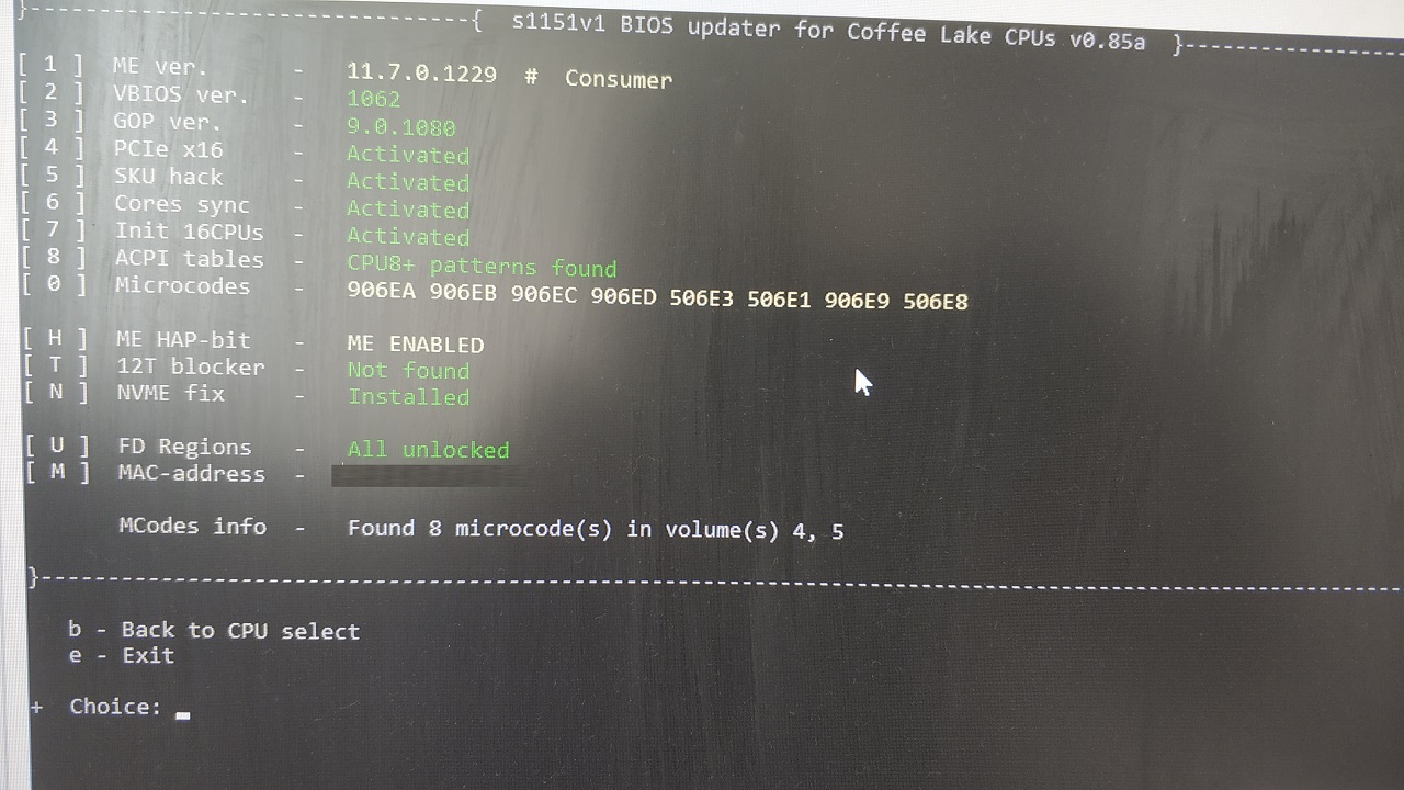 На модифицированных биосах по-прежнему будут работать серийные Skylake и Kaby Lake, если оставить их микрокоды (506E3 и 906E9 соответственно).