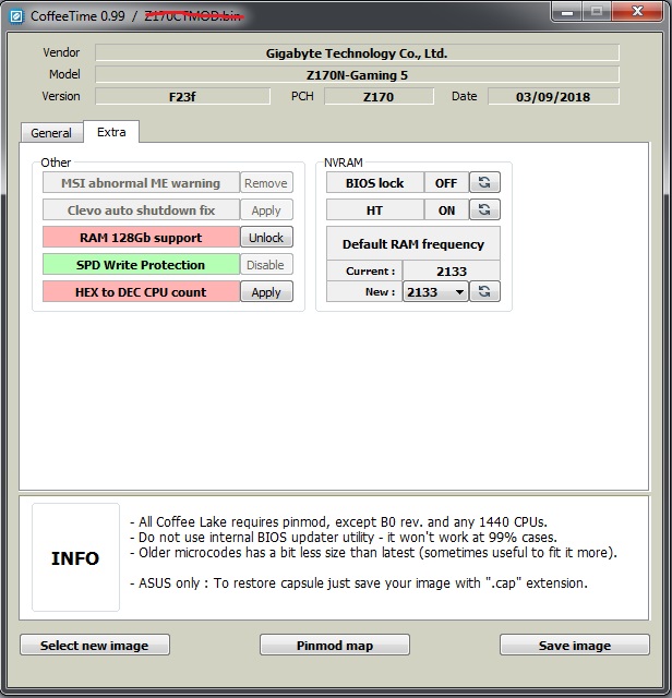 CoffeeTime 0.92 [ Я.Диск ][ Mega ] Автор: svarmod Эта версия не содержит автомодификации, все изменения в биосе проводятся "вручную"; предоставляется без каких-либо подсказок, с GUI, новыми фишками и прочими удобствами. Больше информации о новой версии на [ Страница 407 ]