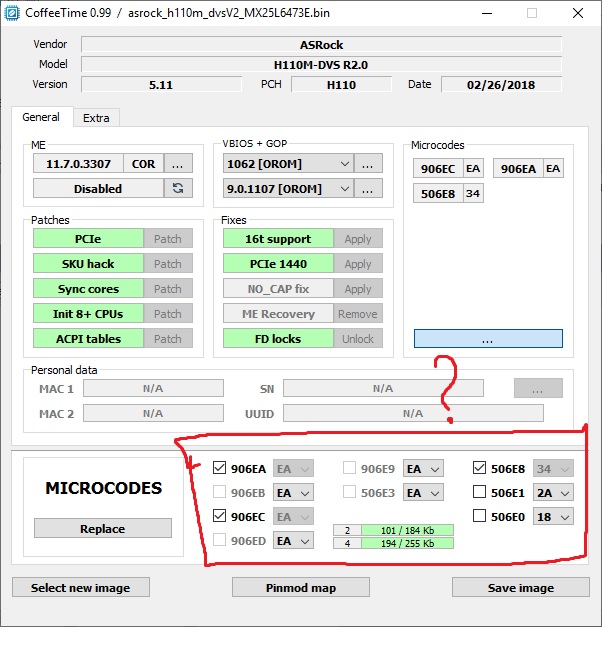 подскажите пожалуйста какой микрокод нужно оставить чтобы стартовали сток процы 6 7 поколения на h110 z170 чипсетах?(примеры микрокодов на скрине) в чипе достаточно места, с текущими галками на матери стартанет любой популярный мутант, однако g3900 уже не хочет заводиться)
