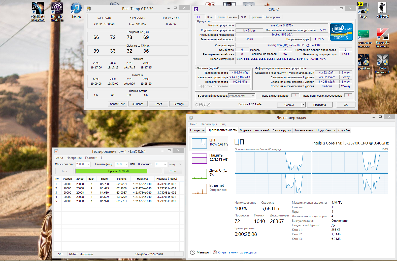 Доброго времени суток. Сегодня гонял свой проц 3570к на материнке Z77-D3H Vcore Loadline Calibration- Turbo vcore 1.3B кратность 44 получил вот такие результаты подскажите как нормализовать напряжение чтобы не прыгало?