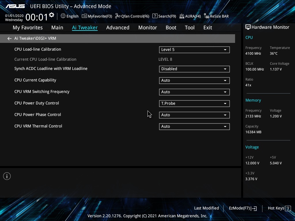 Q: Как победить излишне высокое напряжение процессора на платах Asus? A: Если вы на плате Asus (любой) хотите видеть адекватное напряжение в нагрузке, а не типа выставили v1.3 а получаете v1.5 при LLC 5, то необходимо выставить значение 0.01 для опций IA AC Load Line и IA DC Load Line, после чего вопросы по завышению напряжения решаются.