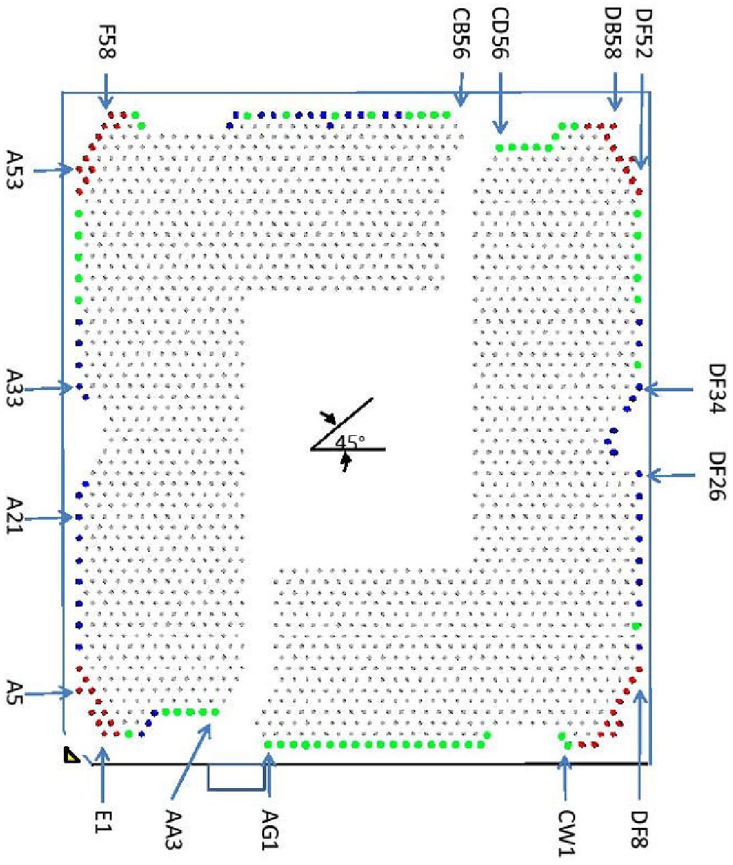 Нашел, но особо разобраться не могу, поиграв в морской бой думаю это они: частично поврежденные A5 и C3 , значительно B6 и С5. Судя по инструкции http://www.sector.biz.ua/docs/lga-775-1150-1151-1156-1155-1366-2011-pinouts/s2011_cpu_spec.pdf описание пинов: Land Name - VSS ; Buffer Type - GND как я понял это питание и 4 пина может быть критично, но за что конкретно они отвечают не разбираюсь, подскажите пожалуйста, может быть в самом деле залудить контакты...