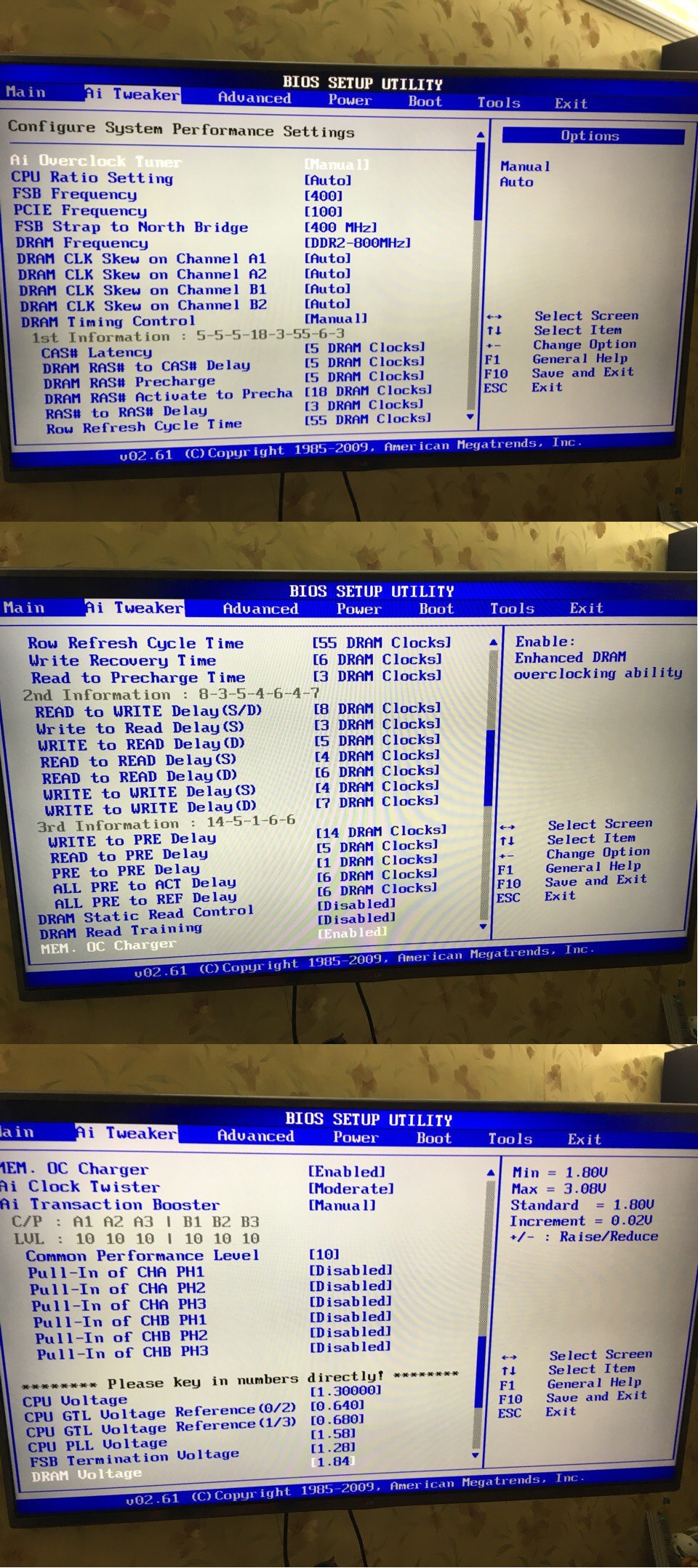 Еще вопрос, можно ли в биосе платы p5q-e посмотреть параметры напряжения, выставленные автоматом? Напротив каждого поля заданы минимальные и максимальные значения, а где посмотреть текущие?