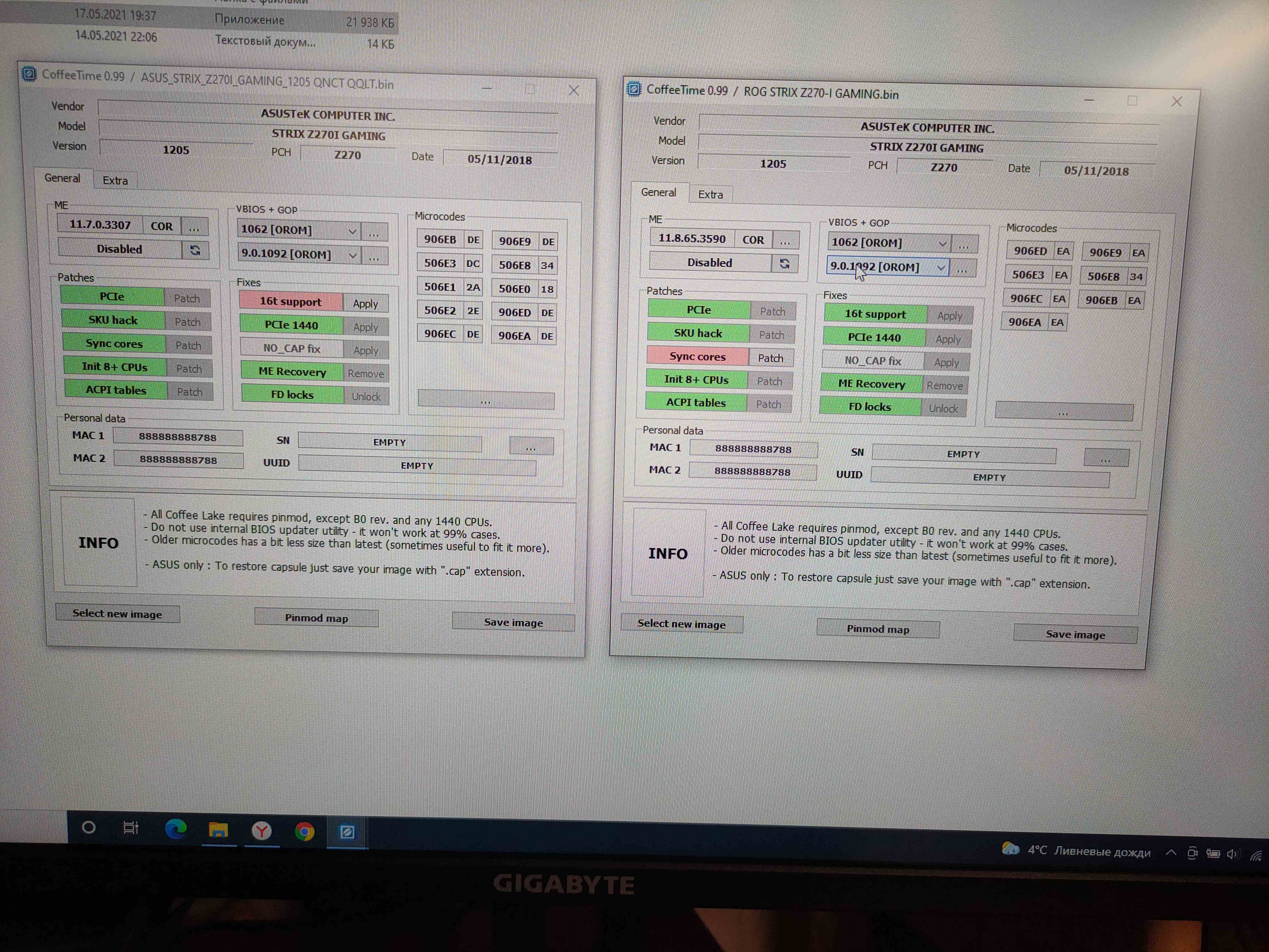 На модифицированных биосах по-прежнему будут работать серийные Skylake и Kaby Lake, если оставить их микрокоды (506E3 и 906E9 соответственно).