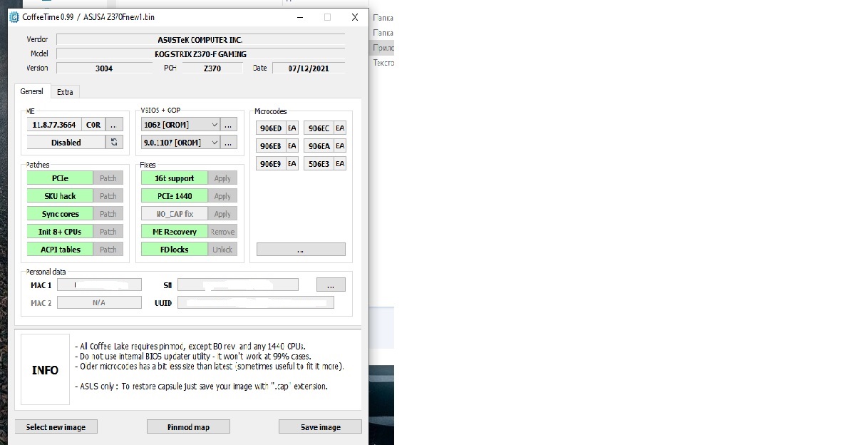 CoffeeTime 0.92 [ Я.Диск ][ Mega ] Автор: svarmod Эта версия не содержит автомодификации, все изменения в биосе проводятся "вручную"; предоставляется без каких-либо подсказок, с GUI, новыми фишками и прочими удобствами. Больше информации о новой версии на [ Страница 407 ]