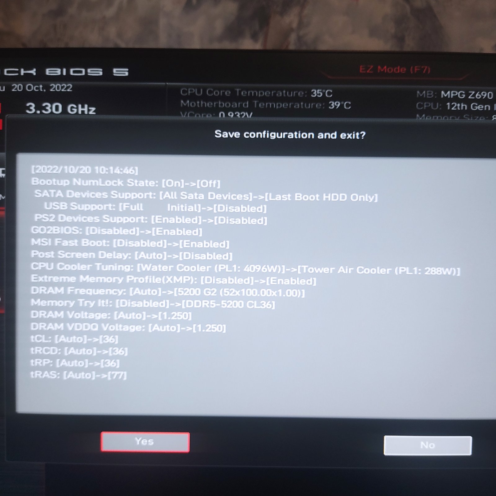 Msi support Заметил интересный баг, который кочует с самого первого биоса для z690-a pro ddr4 и есть в том числе на самом последнем биосе 192 от 14/10/2022. В чем суть - если выставить профиль XMP то по умолчанию sa voltage для i7-12700k ставится 1.45в, что многовато на мой взгляд, а vddq устанавливается 1.2в. Но vddq для работы памяти в G1 4000mhz маловат и тесты памяти выдают ошибки, приходится его повысить до 1.25в. sa же великоват и я его понижаю до 1.2в. И баг в том, что если в биосе понизить вначале sa voltage а vddq оставить в auto или же поменять сразу и sa и vddq то память по прежнему сыпит ошибки + occt не проходит тесты процесссора, prime95 вызывает синьку и не проходит тест. А если изменить сначала vddq и не трогать sa voltage, сохранить настройки, перезайти в биос и уже после этого поменять sa voltage то все работает идеально и без ошибок.