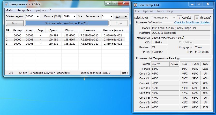 Xuanan x79 Deluxe 6.11 Xeon 2689 MX-2 + Noctua HN U-14S Вентилятор работает в авто от 350об и примерно до 900-1.1к его не слышно и эффективность охлаждения хватает даже в летнюю жару) (также если чуть перемазать термопасту нанести чуть более толстый слой (там слишком тонкий получился,а перемазывать не стал) может и получится снять пару градусов,хотя смысла не имеет). В среднем имеем от 48гр и до 65гр по самым горячим ядрам)