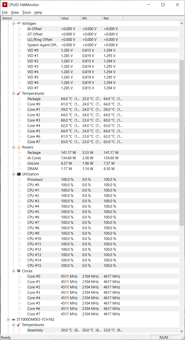 Вы же говорили что у вас руки из правильного места растут, если не тока руки но и голова из правильного места растет, да без разгона корректно настроенный CPU работает стабильно на сколько может работать стабильно брендовый процессор интел. Весь изюм в том и заключается, полу кустарный китайский "кооператив" не процессоры производят, а по сути припаивает брендовое изделие на подложку. QTJ1 это как бы предрелизный образец окончательной серийной версии. Степинг идентичен, однако маркировка ES и есть некоторые отличия по частотам (более низкие) хотя процессор разгоняемый и берет вплоть до 5.1-5.2 (но это разгон и стабильность под вопросом) Я вам выложил скрин сток по частотам, но в тоже время и не сток по настройкам процессора в биосе, скорректирована динамическая регулировка напряжения процессора, задан теплопакет, синхронизированы ядра, один из самых жестких вариантов стресс теста при том что AVX не ауто и =1. Стресс тест может стабильно проработать несколько часов(проверял), а может и больше (не проверял). Т ядер с разбросом не более 5ти градусов и ниже 65 градусов и без забросов Т в начале нагрузки. Пропеллеры СВО крутятся на средних оборотах (не влезло в скрин), т.е. система едва слышимо работает даже в стресс тесте, в штатном режиме слышно лишь как работает воздушный охлад 250ти ватной видео карты.