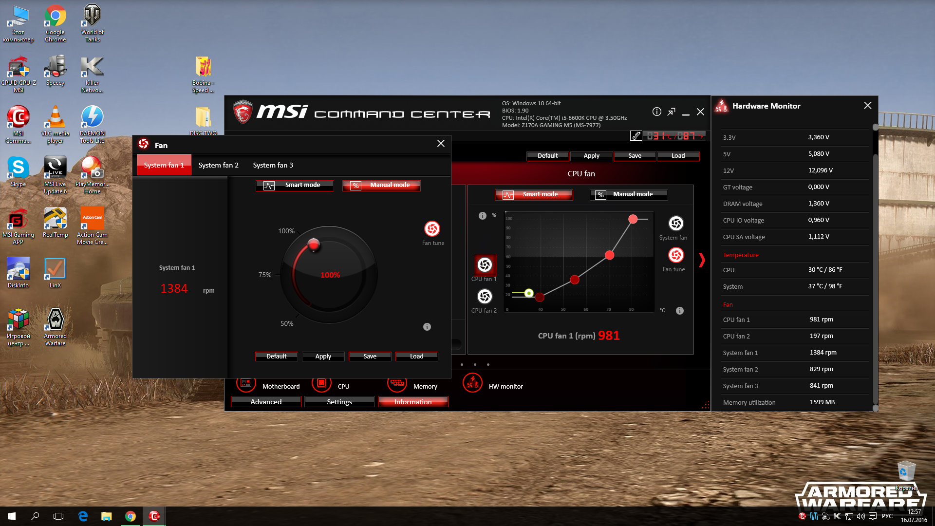 Добрый день. Собрал себе ПК из комплектующих: Core i5-6600K + Zalman CNPS10X PERFORMA/+ MSI Z170A TOMAHAWK 16Gb DDR4 2133MHz Kingston HyperX Fury Все новое из магазина.