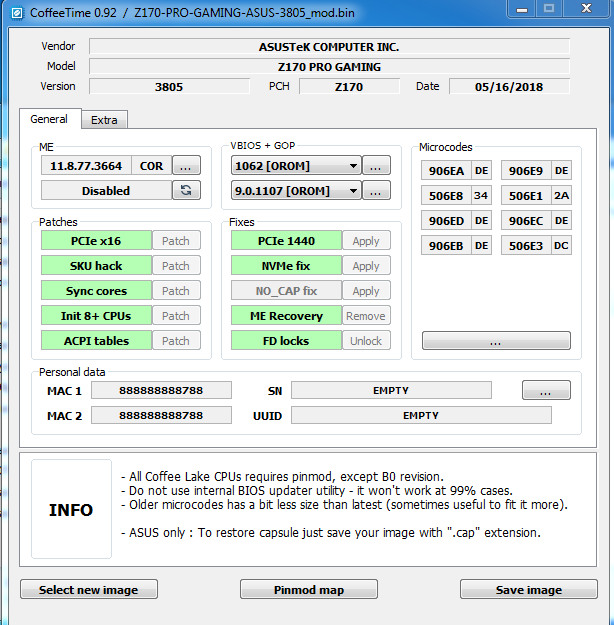 Для плат на базе чипсетов Z370, B365 и H310C можно добавить поддержку процессоров Skylake и Kaby Lake. Для этого достаточно понизить версию МЕ и добавить необходимые микрокоды.