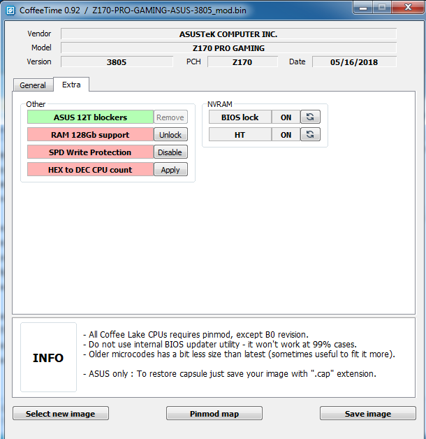 CoffeeTime 0.92 [ Я.Диск ][ Mega ] Автор: svarmod Эта версия не содержит автомодификации, все изменения в биосе проводятся "вручную"; предоставляется без каких-либо подсказок, с GUI, новыми фишками и прочими удобствами. Больше информации о новой версии на [ Страница 407 ]