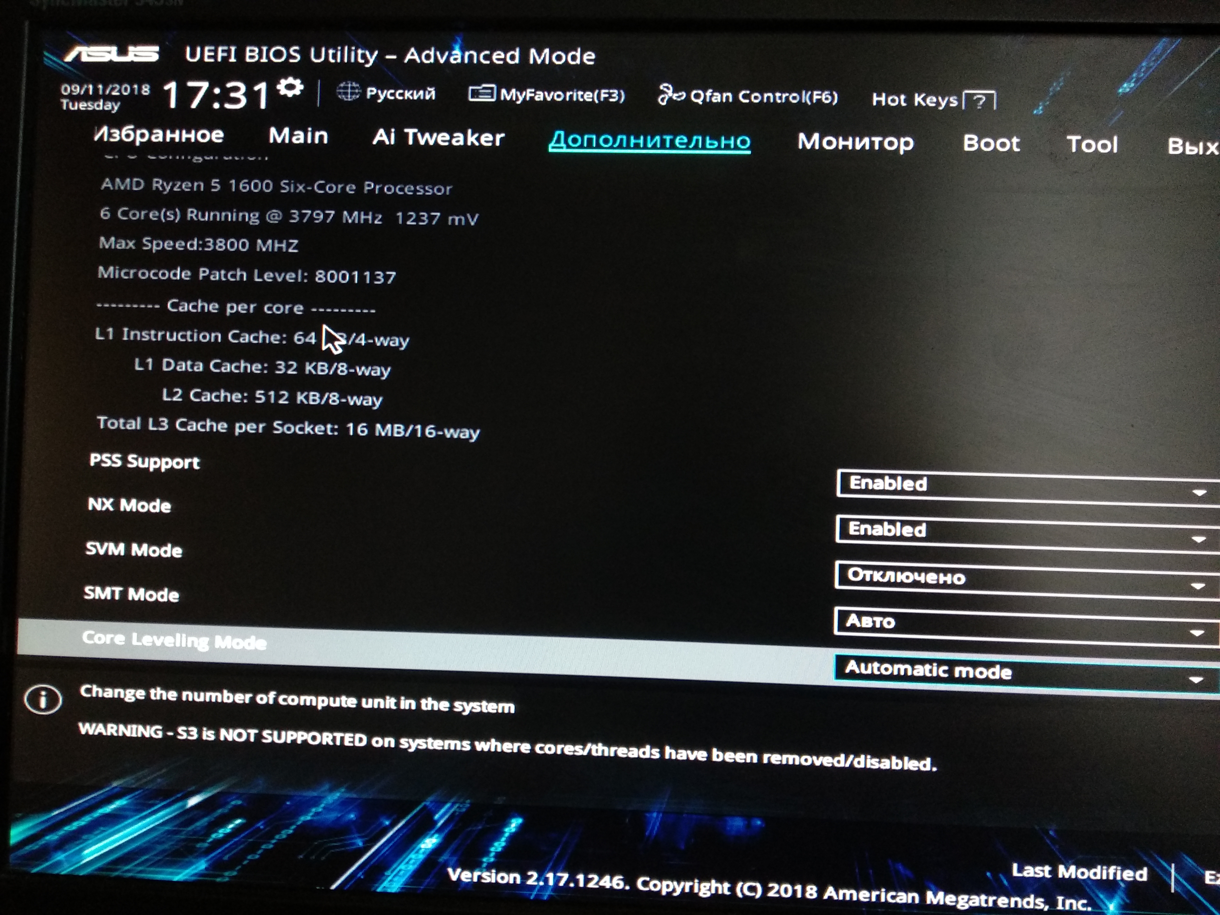 Добрый день всем! Ребята, помогите с разгоном! Конфигурация: Ryzen 1600, Asus prime b350 plus, память 2× памяти SAMSUNG M378A1K43BB2-CRC 8Гб. Bios 4011. Выставил все параметры по таблице, со схожими характеристиками ПК. Память разогналась до 3200. А вот процессор ни в какую не хочет. В характеристиках процессора в диспетчере задач стоит 3.8 частота, но текущая - 1,33 что в нагрузке, что без. То ли Виндоус урезает частоты, то ли Биос. В Винде выставлял режим максимальной производительности, не помогло. Какие есть варианты решения? Помогите пожалуйста. Спасибо.