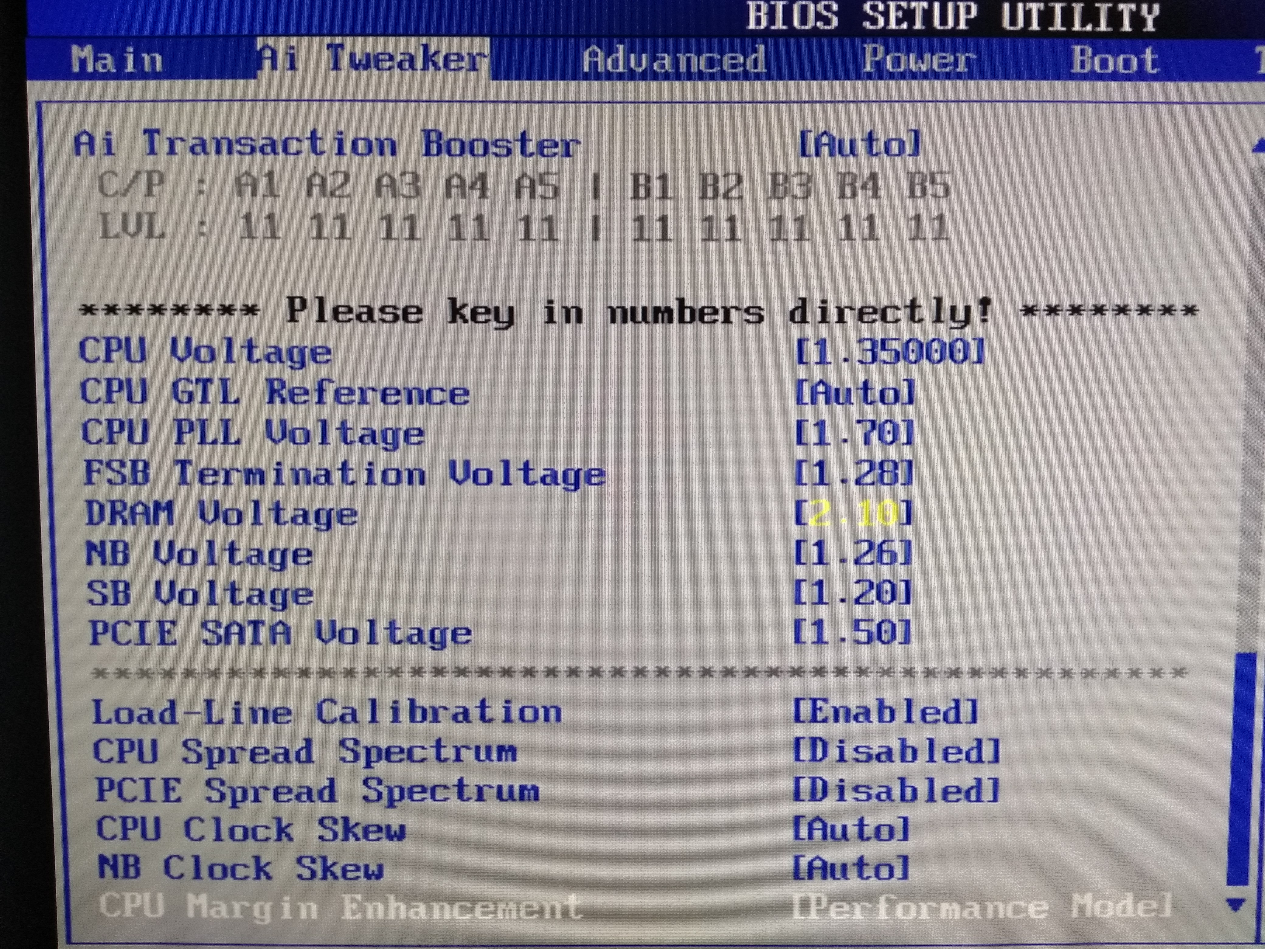 привет парни! как заставить память работать 1333, сейчас 1/1 т.е 900 проц 8,5*445 не понимаю) и по напряжения дайте советы, что выставить asus p5qc + 5440 +8ddr3