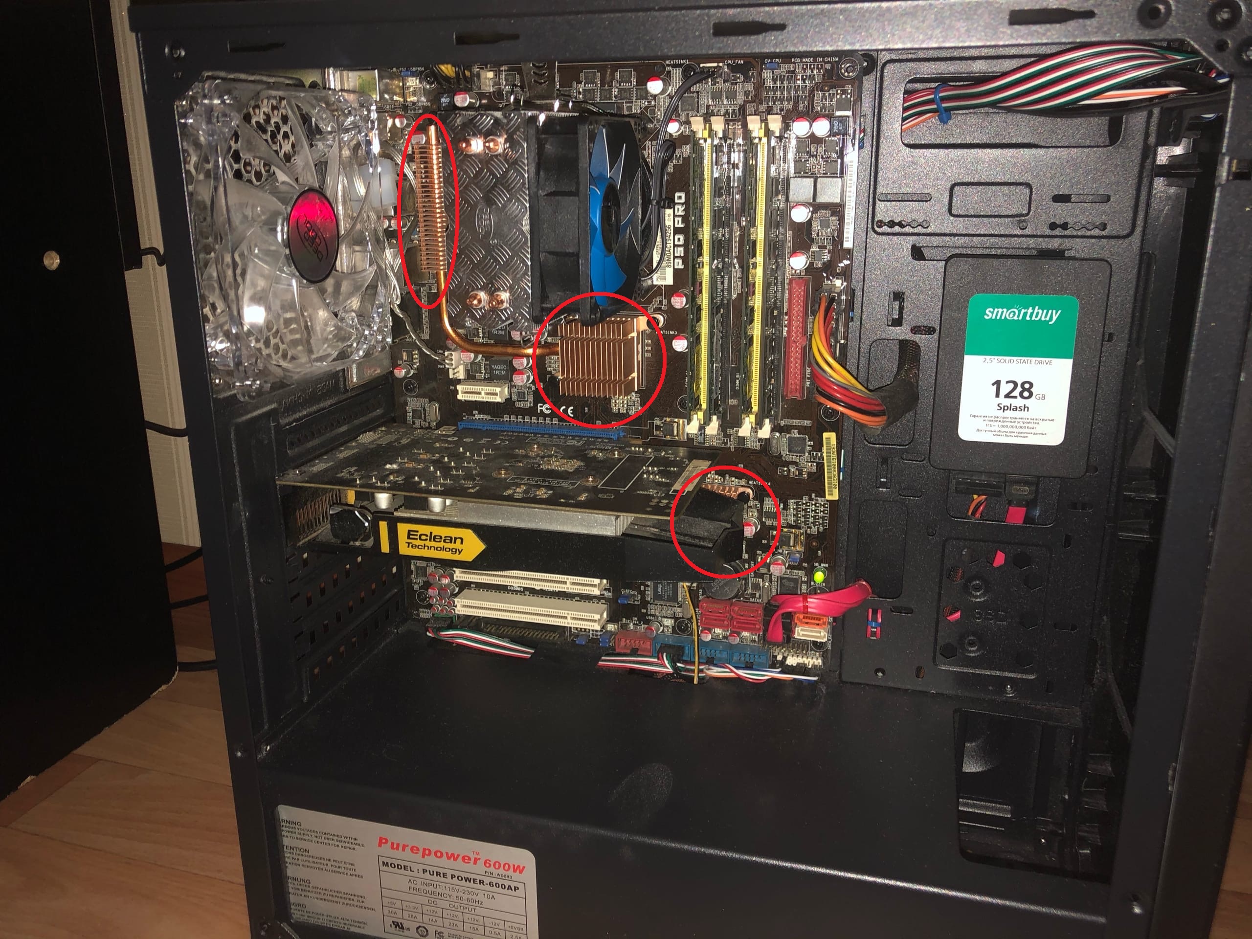 Выделенные области в кружок потрогал, на ощупь просто тёплые...