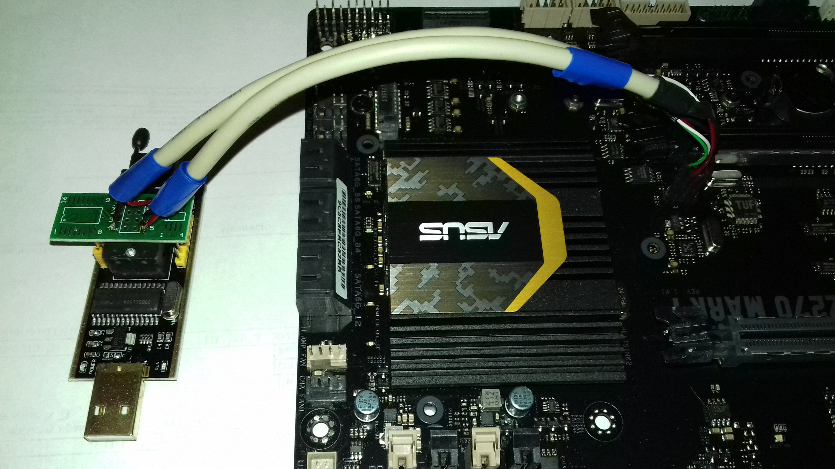 cyxxapukвот этим подключайся, и не выдумывай, если люди говорят что лучше через разъем JSPI, значит так лучше, или вы эксперт по прошиванию биосов ?! и к тому же производители тоже по вашему идиооты лишние разъемы, предназначенные именно для прошивки без выпаивания, лепить на плату ?