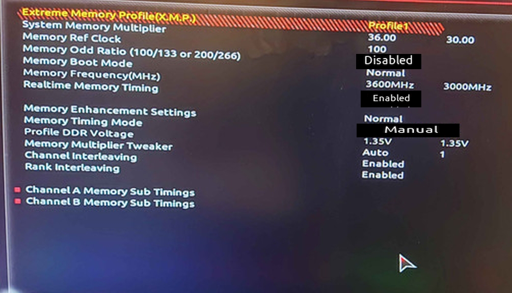 потом уже снижениями заниматься +экспериментишь(подгоняя множитель на память) c Мем REf Clock 133 или 100 и мемориODD Ratio в disаb/enab, а не авто +ёщё надо смотреть на прочие тайминги и сопротивления(RTT) выставляемые платой.
