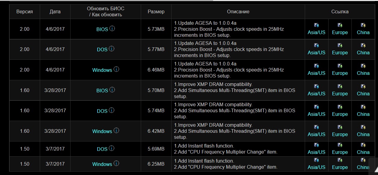И биос 1.5 не доступен для скачивания для bios. только windows и dos С версии 1.6 уже можно скачать для Biosa