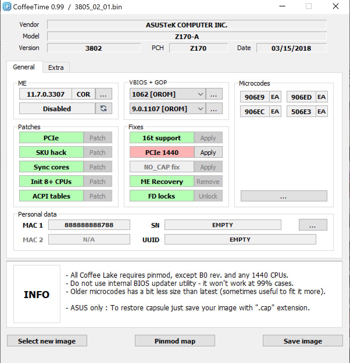 На модифицированных биосах по-прежнему будут работать серийные Skylake и Kaby Lake, если оставить их микрокоды (506E3 и 906E9 соответственно).