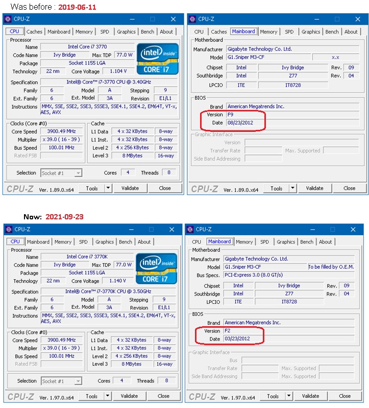 Давно не включал ПК с Z77, и теперь заметил что BIOS откатился назад, на версию F2 которая была изначально на материнке из коробки. (??!!) Не знаю, не заметил как и когда (может играючи с частотами?) такой откат BIOS мог случиться: