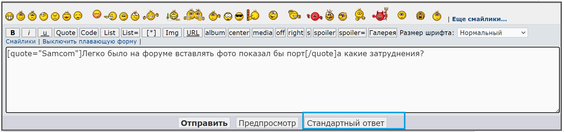 а какие затруднения? "Стандартный ответ" внизу окна сообщения, "Выбрать файл" - "Добавить файл" и тег [spoiler = ]/[ /spoiler ] и "Вставить в текст сообщения", если картинка не одна вставляем по очереди