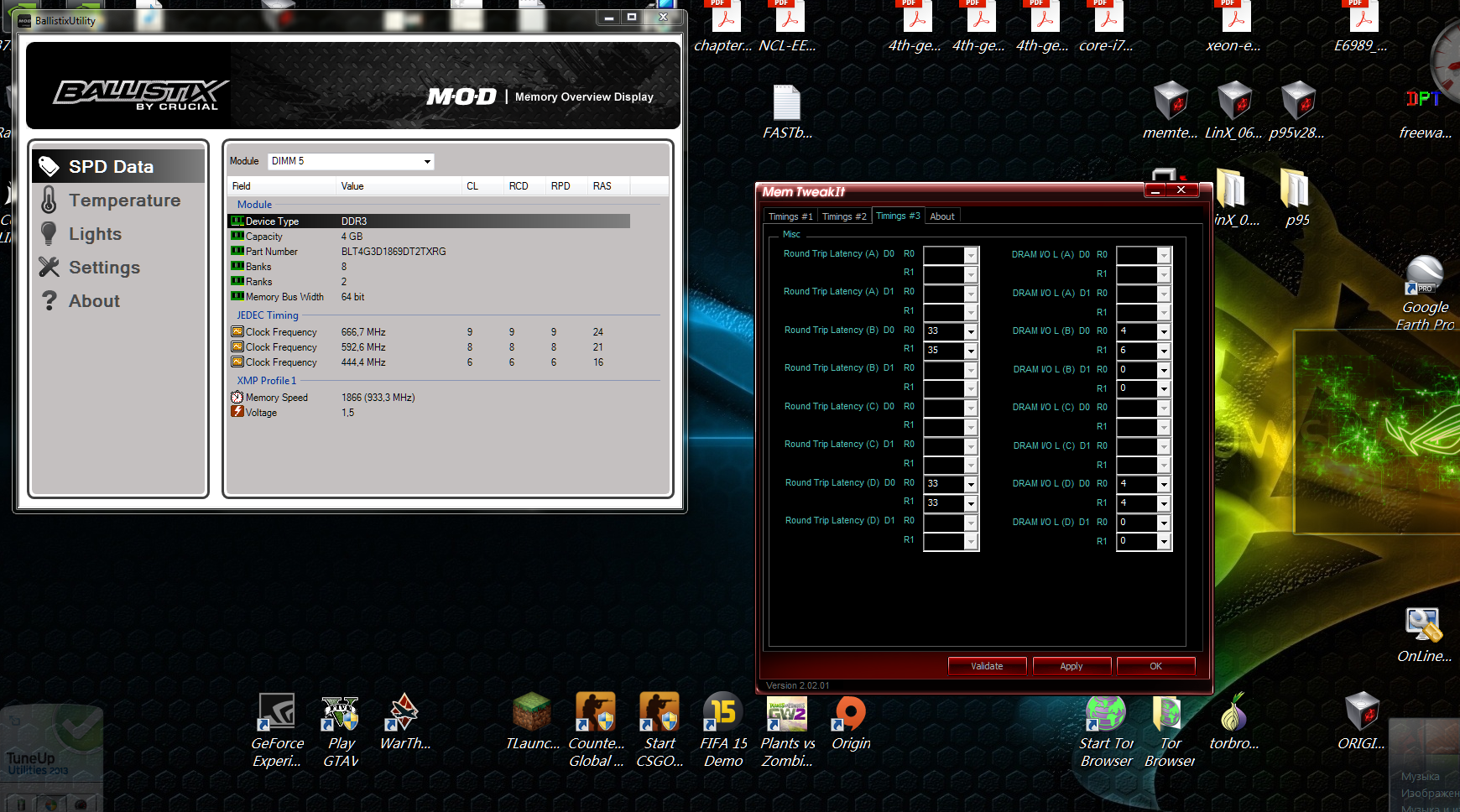 Здрасте на форум! Такой вопросик нарисовался- брал два комплекта памяти ( CRUCIAL BLT2CP4G3D1869DT2XRGCEU 2x4гб) один и через пару недель другой .... так вот - все вроде норм , но есть небольшая загвоздка . третьи тайминги (латентности) мамка расставляет разные : на два канала 35-5 , на другие два 33-4 , если ставить тот комплект который был куплен вторым в слоты А1,С1 то тайминги - как когда 35-5 на три канала 33-4 на четвертый , или может быть так: 35-5-11-11 33-4-11-11 35-5-11-11 33-6-11-11 если ставить этот же комплект (купленный вторым) в слоты D1 B1 то как и говорилось 35-5-11-11 33-4-11-11 35-5-11-11 33-4-11-11