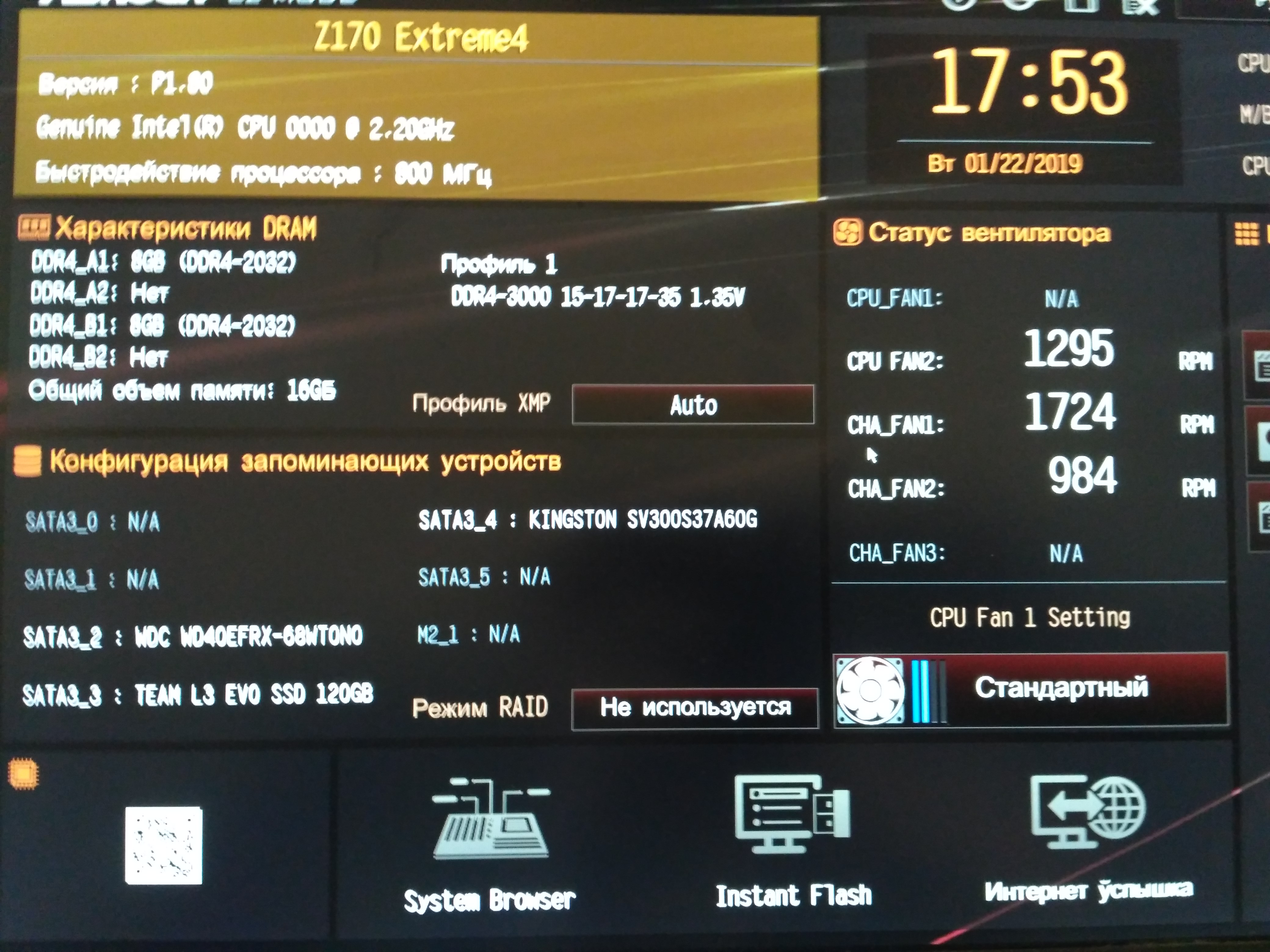 Добрый день. Прошу помощи форумчан. По случайности стал обладателем Z270-k4 с установленным процом G4400 и 16 gb памяти. Небольшое тестирование и установка Винды проблем не выявило. Однако, проц явно слабоват, в связи с чем был найден 7700k. И вот после установки начались танцы с бубном. Первое, это установленная ранее винда на этой же мат. плате но с другим процом ни в какую не загружается, уходит в перезагрузку. Попытка установить заново, безрезультатно. Единственное с чего грузится система это с Grub4Dos + небольшие сборки, аля Windows 7 PE. Танцы с биосом не принесли результатов, в плоть до его прошивки до оф. версии 2.30 и сброса настроек на дефолт. Перемычка сброса биоса не помогает. Комплект максимально "голый" ибп+мать+проц+память+hdd+кулер (клава, мышь). Что делать, ума не приложу. Помогите советом.