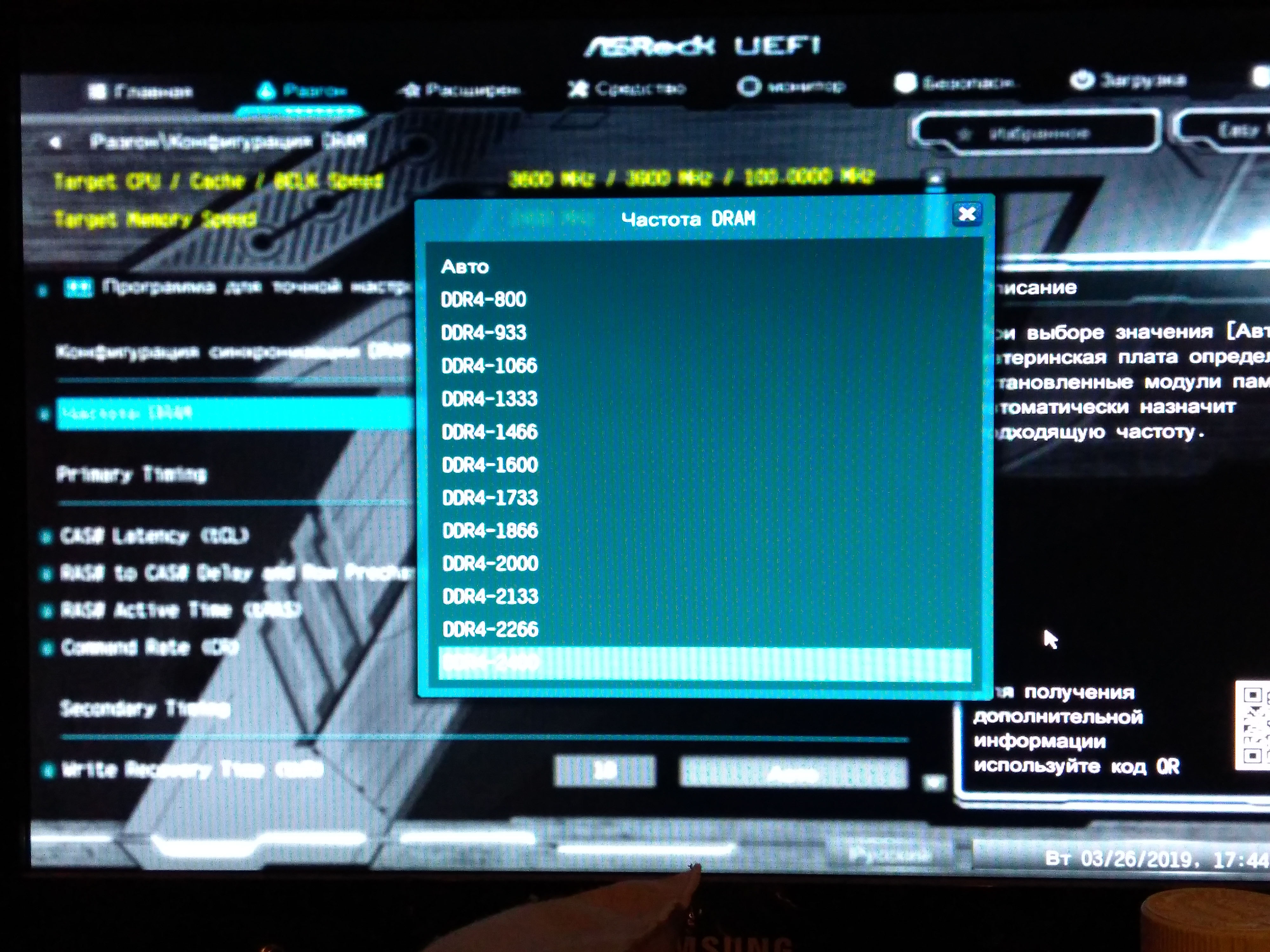 Здравствуйте. Имеем: i7-7700. ASRock Z270M Pro4. ddr4 Kingston HyperX 2400; ddr4 Reeno 2666. БП AERO Cool VX-500. Остро нужна помощь с материнкой . Как оперативку завести, а лучше разогнать до частоты 3000 мгц ?? Проц i7-7700. Биос прошит последний — 2.5 . В нем список частот оперативки 800 — 2400 мгц. Вставляю DDR4 2666, она тоже работает только на 2400. Где искать?? В биосе OC Tweaker Screen — DRAM Configuration — DRAM Frequency. В этом списке частот работы памяти последнее значение — 2400. При установленной одной планке DDR4 2666 ставлю тайминги 31-31-31-64 и напряжение питания памяти поднял со стандартных 1.2 В до 1.35 В. В списке частот работы памяти последнее значение остается 2400. На доп. странице ввода точных характеристик памяти ставлю частоту 2666. В списке значение остается 2400. Память работает на 2400. Что еще попробовать?? Возможно, я не переключаю что-то очевидное.