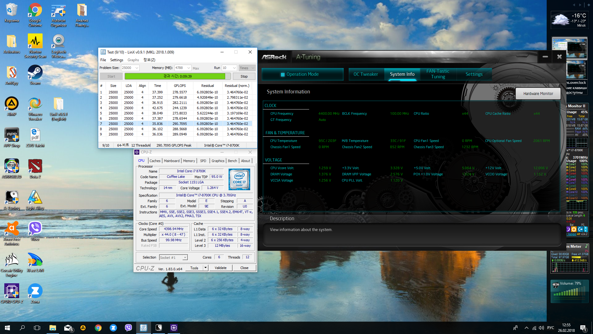 Добрый день! Вот мои эксперименты... Множитель выставлен на 48 (кэш 44), во время ликса, множитель автоматом опускается до 44. Напряжения пробовал фикс и оффсет, остановился на фикс 1.25. Ликс проходит без проблем, но вопрос в температуре до 95С