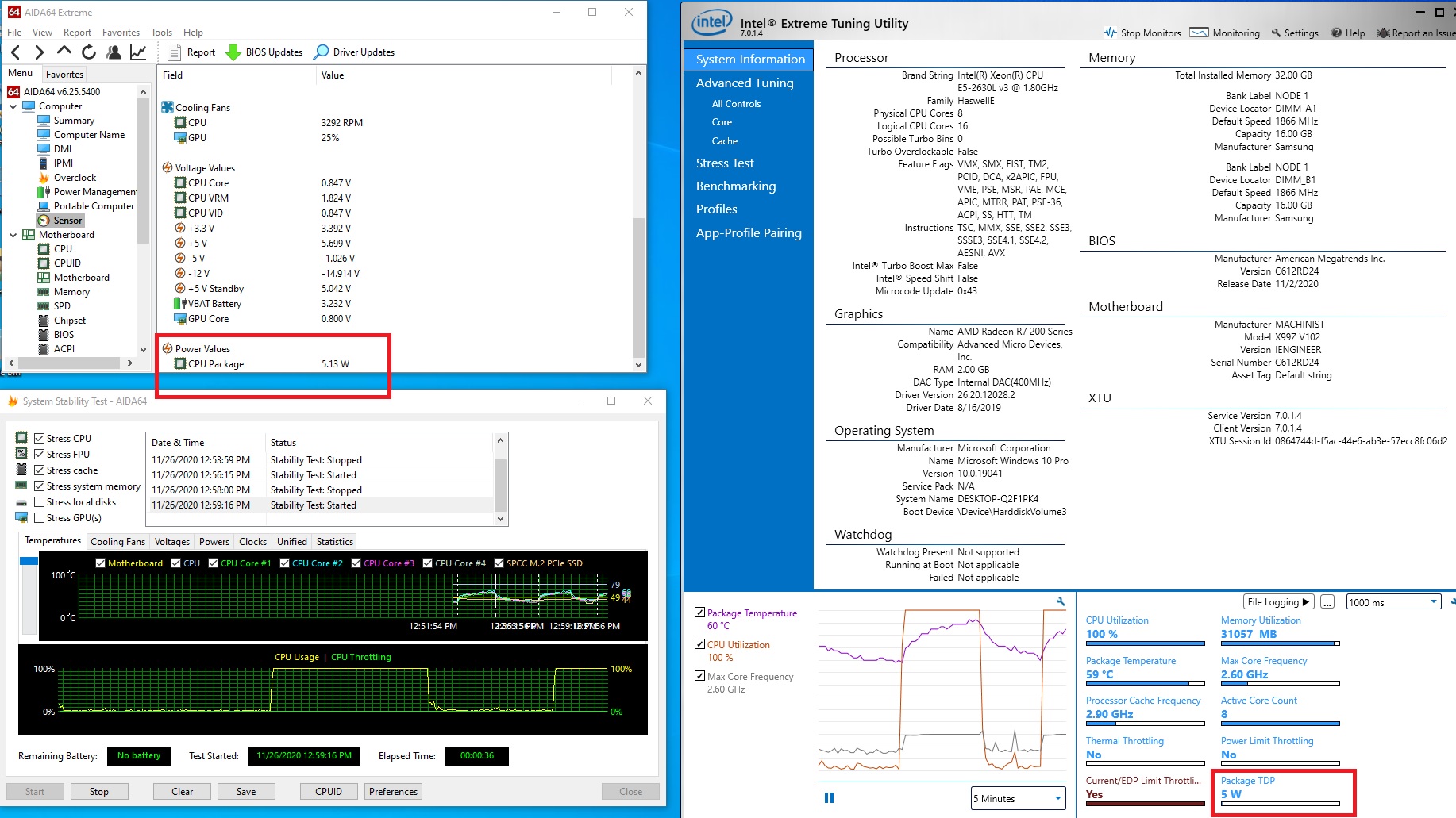 Я заказал уже 2628v3, но для другой платы X99Z V600, та что mini-DTX форм-фактора и с двумя слотами под память. На ней 2630lv3 совсем плохо едет, частота проваливается по некоторым ядрам до 900Mhz. На этой же плате (X99Z V102A) 2630lv3 едет нормально, моя проблема только в том что TDP правильно не показывается.