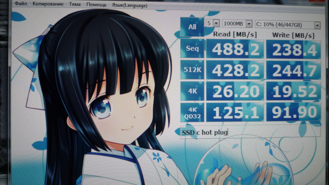 Включил Hot plug и ничего не поменялось, знаю точно если отключу sata кабель с 2-ух дисков левых, даже значёк винды не будет успевать долетать и никакого приветствия - сразу раб стол! Вот и скрины тестов SSD - без hot plug и с ним!!!