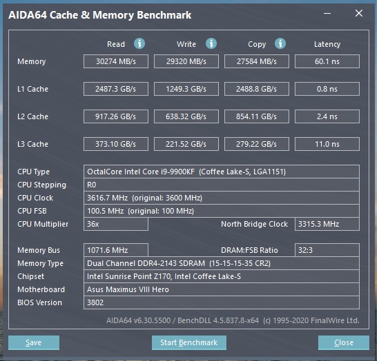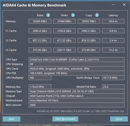 Доброго времени суток! Модификация материнских плат 100/200 для поддержки процессоров Coffee Lake 8xxx/9xxx #17507505 писал там и руки дошли тестить)) i9-9900KF завелся без проблем. Когда был инженерник и биос старый до мода кт99 ХМР профиль для озу в два клика разгон давал теперь не работает тупо в BSOD Win грузит сразу почитал на форуме подумал и поставил (AI Overclock tune в -auto-) и (Extreme Tweaker\DRAM Timing Control строчку maximus Tweak -Авто-) частоту в ручную выставил 3000 (способ рабочий для M8H на последнем биосе если не гонится озу ХМР) (планки с RGB по умолчанию идут с 3000 частотой) увидел разницу в том что вольтаж ставится в авто 1.504 а с XMP 1.35 но даже если меняю вручную именно вольтаж на 1.5 не стартует. через aida нагрузку на озу дал на 20мин 100% все норм дал на проц 1 галка 100% 20 мин все норм.. но если ставлю более одной галки сразу 10-20сек температура вверх и бсод ловлю. 1 дефолт 2 разгон минимальный 2300 3 разгон по инфе выше)) результат вроде хороший?