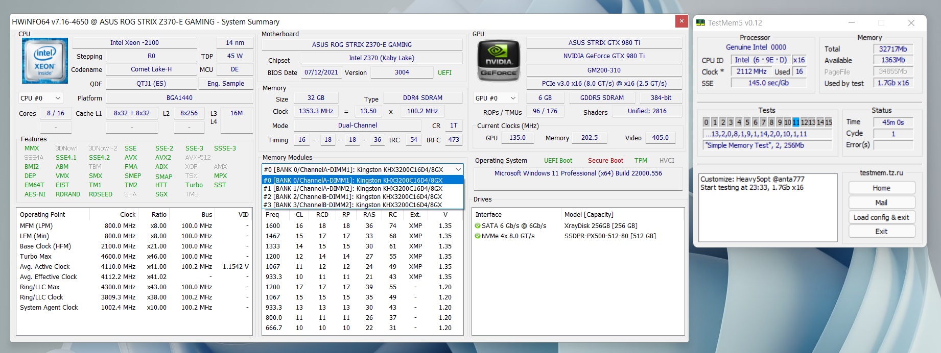 У меня в постоянной эксплуатации qnct, qtj1, qtj2 берут в районе 3000 на раз два хоть в режиме ауто таймингов, хоть с xmp профилем и стабильно работают, проблемы начинаются на любом моем мутанте если использовать больше 2ух планок памяти и там да уже и 2800 в радость настроить на стабильную работу. Да даже 2700 и то уже проблематично, надо вручную подкручивать работу памяти иначе неизбежно ошибки памяти сыпятся и иногда рандомно вылеты в синий экран. Можно и выше частоты взять, но настройка памяти не документирована должным образом и все происходит больше по наитию методом научного тыка и на стабильность работы может повлиять какая то на первый взгляд незначительная опция, закорючка при том что настроек валом, в погоне за более высокими частотами пока подберешь необходимые настройки могут месяцы пройти. А оно того стоит, когда в реальных задачах разница не заметна? Вот если видео карту заменить на большей производительности вот там реально заметна разница не вооруженным глазом. А +5 фпс или +200 попугаев, раньше выполненная задача на 10 сек реально погоды не делают при том что значительно могут ухудшить в целом стабильность работы системы.